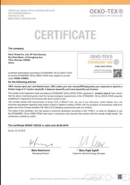 Hmei Thread Co., Ltd. Of Yibin Sichuan была созданаи в июле 2001 года. В настоящее время у Hmei Thread зарегистрированный капитал составляет 429 млн юаней, численность сотрудников - 1480 человек, а совокупные активы - 2000 млн юаней. Это является влиятельным частным sino-foreign joint venture предприятием в провинции Сычуань.
